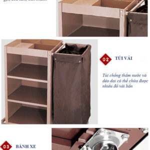 - Là xe dọn buồng phòng tiêu chuẩn, giúp tăng hiệu suất làm việc của nhân viên.