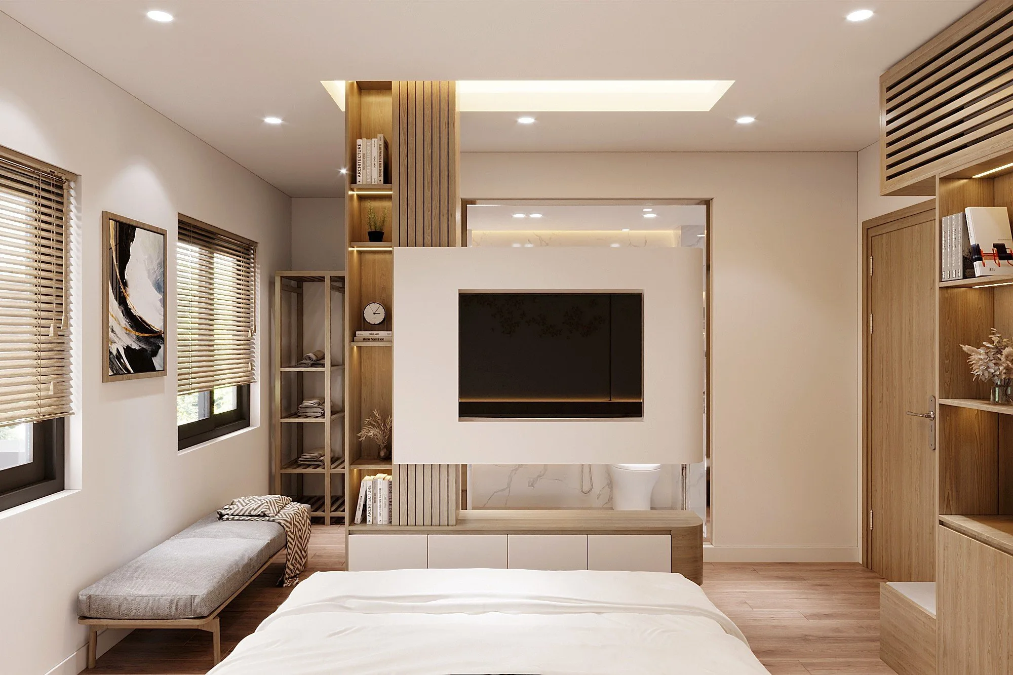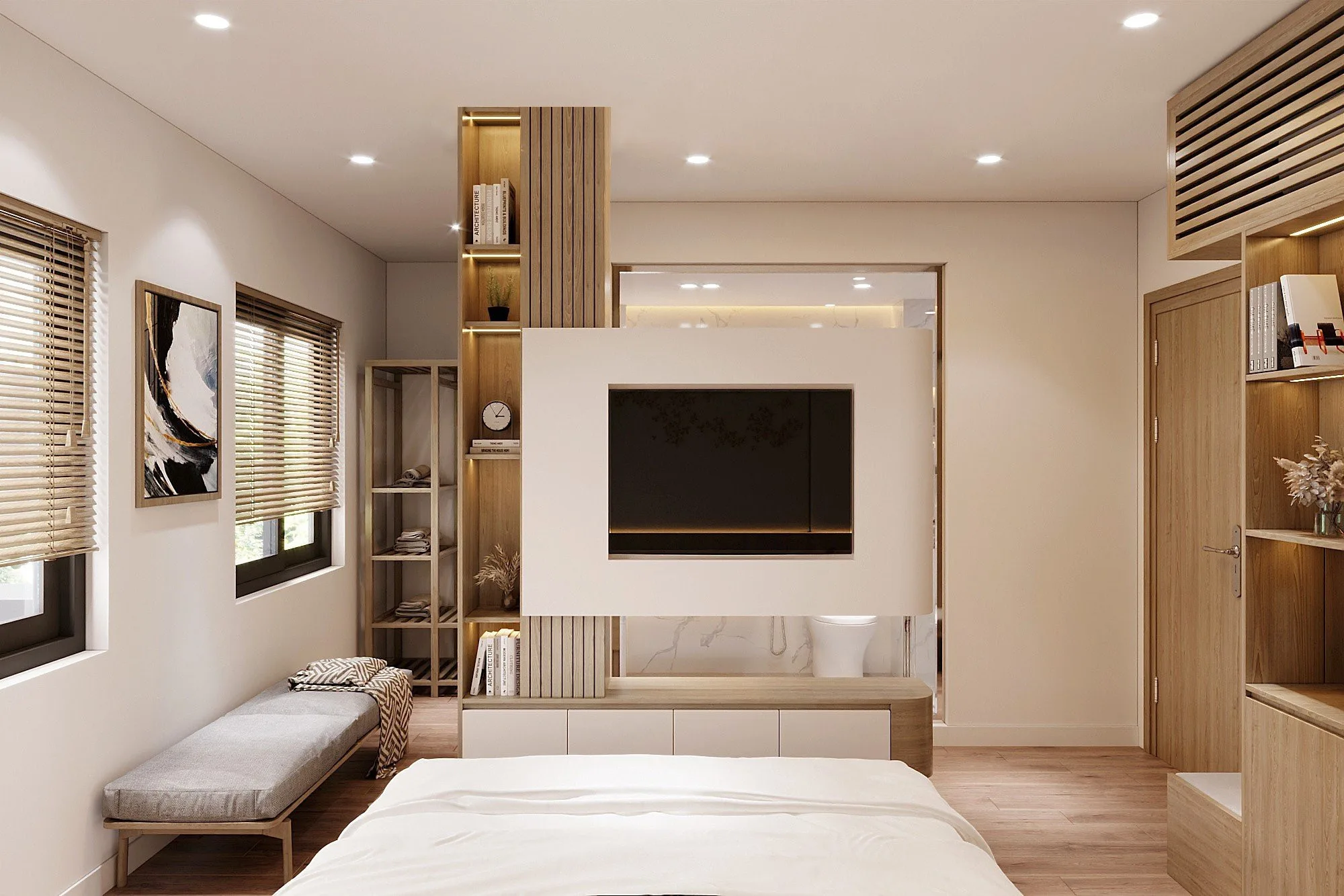 Đây là giải pháp kinh tế nhất cho các nhà đầu tư có vốn mỏng hoặc diện tích đất hạn chế. Thiết kế tối giản giúp giảm đáng kể chi phí thi công và thời gian hoàn thiện, đồng thời tạo cảm giác căn phòng rộng hơn so với diện tích thực tế, mang lại sự thoải mái cho khách lưu trú ngắn ngày.