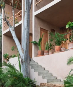 Sự kết nối đất mẹ: Khách sạn không chỉ là nơi lưu trú, mà là một trạm dừng chân giúp du khách tái kết nối với các giá trị nguyên bản. Không gian được mở tối đa để ánh sáng, gió biển và tiếng rì rào của rừng rậm trở thành một phần của nội thất.