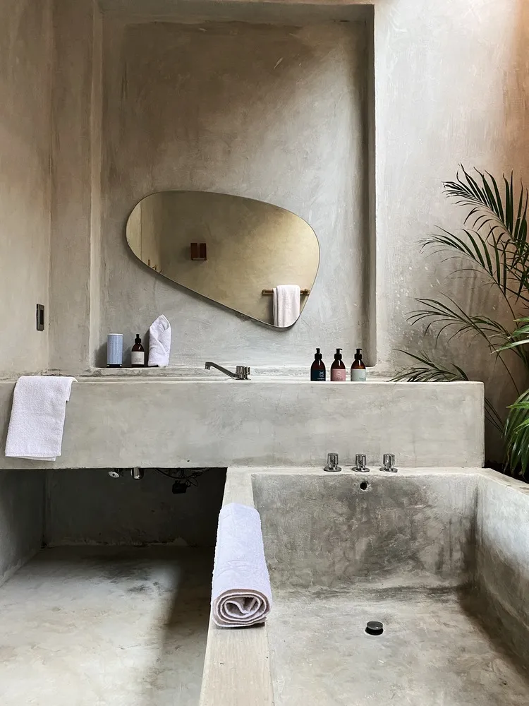Bề mặt nhám (Texture): Thay vì mài phẳng, bề mặt tường được giữ lại độ thô nhám tự nhiên. Dưới ánh nắng vùng biển San Agustinillo, các vân nhám này tạo nên những hiệu ứng bóng đổ phức tạp, giúp công trình hòa quyện hoàn hảo vào rặng núi xung quanh, giống như một thực thể mọc lên từ lòng đất.