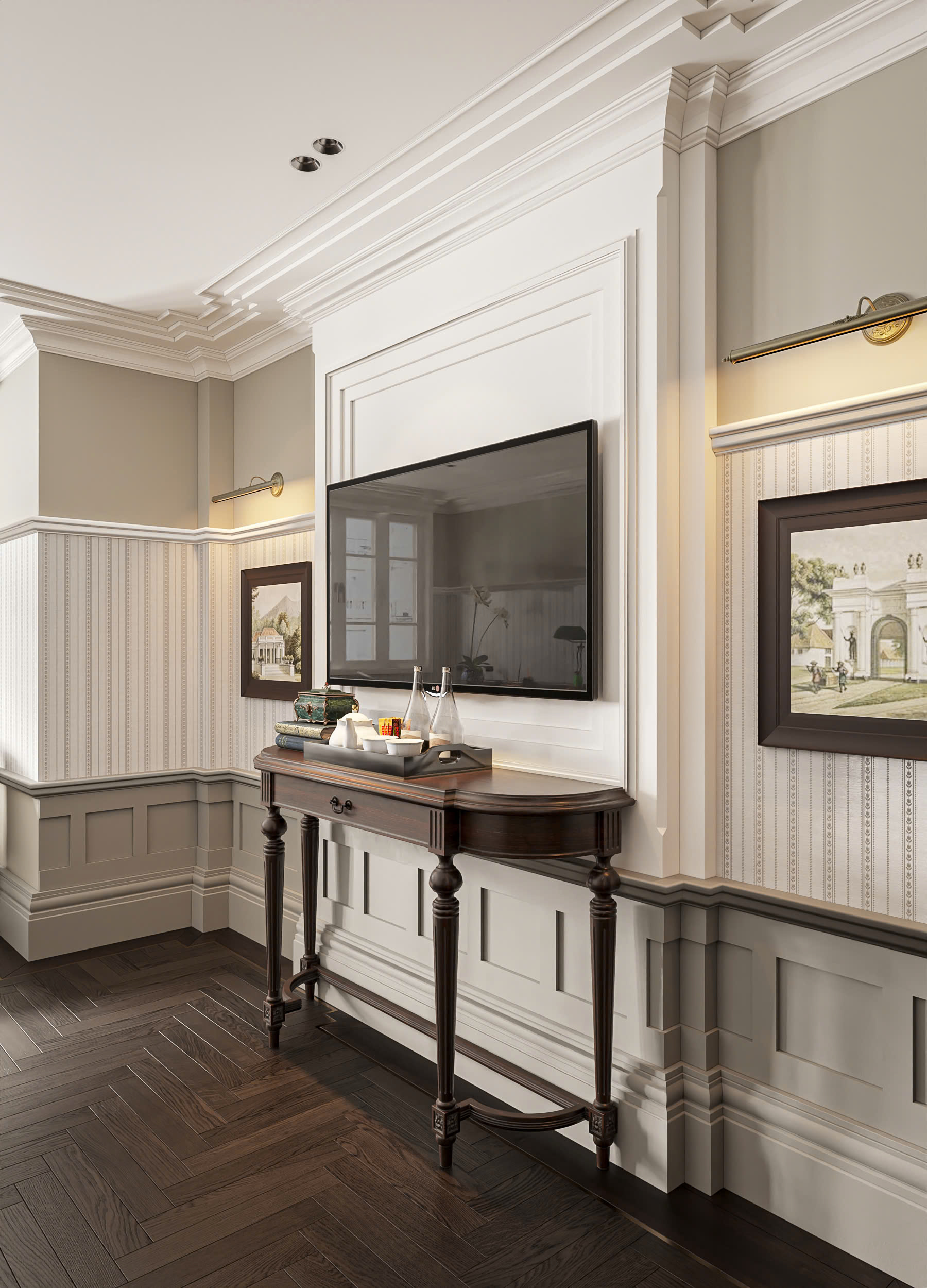 • Tường: Vượt ra ngoài sơn nước, tường có thể trở thành một tác phẩm nghệ thuật với các kỹ thuật sơn hiệu ứng, ốp gỗ, ốp đá, treo các tác phẩm nghệ thuật độc đáo hoặc sử dụng giấy dán tường cao cấp với họa tiết riêng biệt.