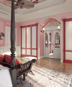 Thiết kế combo nội thất khách sạn boutique Mã Innbt11 là giải pháp nội thất Modern Glamour (Sang trọng Đương đại), một tổng thể hài hòa giữa sự mềm mại, ấm cúng và vẻ đẹp lãng mạn. Thiết kế khách sạn này sử dụng gam màu Nude, Be, Trắng Kem làm nền, tạo điểm nhấn với Hồng Đất (Dusty Pink), nội thất bọc nệm nhung và các chi tiết kim loại Vàng/Đồng, kiến tạo nên một không gian nghỉ dưỡng sang trọng, cá tính và đầy cảm xúc, lý tưởng cho phân khúc khách hàng cao cấp yêu thích sự tinh tế.