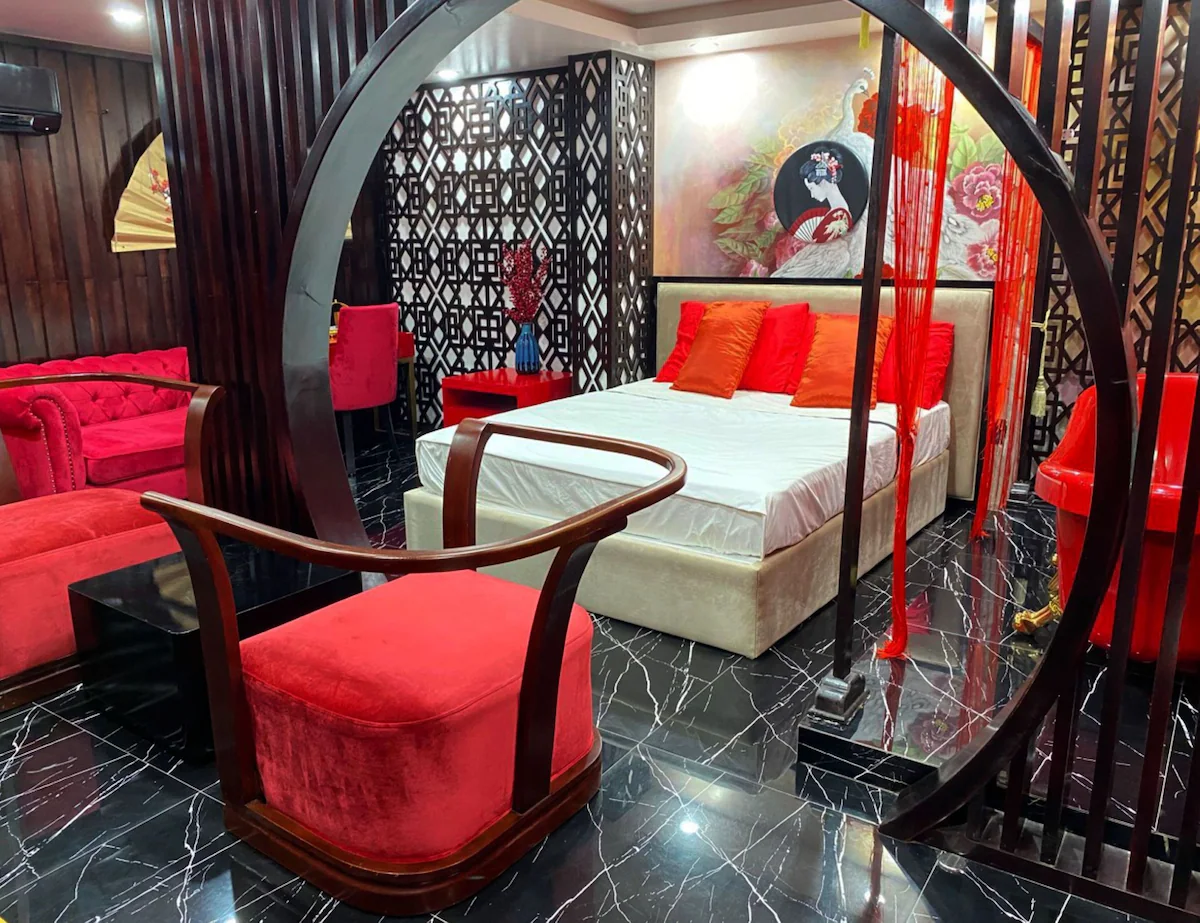 Mục tiêu Thiết kế Sử dụng sắc màu mạnh mẽ để tạo sự nhận diện thương hiệu độc đáo, định vị khách sạn ở phân khúc Luxury và thu hút khách hàng thượng lưu tìm kiếm trải nghiệm nghệ thuật, hoài niệm.