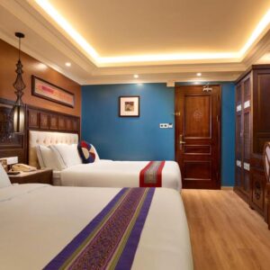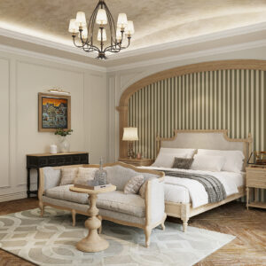 Thiết kế combo nội thất khách sạn boutique Mã Innbt07 là giải pháp nội thất Urban Luxury (Sang trọng Đô thị), nổi bật với sự kết hợp hoàn hảo giữa tông màu Ghi Xám (Greige) trầm lắng và nội thất Gỗ Óc Chó (Walnut) sậm màu. Combo này tạo nên một không gian nghỉ dưỡng trưởng thành, tinh tế và đậm chất doanh nhân, nơi sự tối giản được nâng lên thành đẳng cấp.