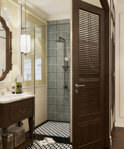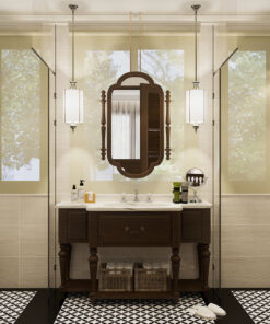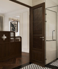 Điểm nhấn Tông màu trắng & kem, gỗ sồi sáng màu, đá ốp vân xám, hệ thống ánh sáng ẩn, phòng tắm mở.