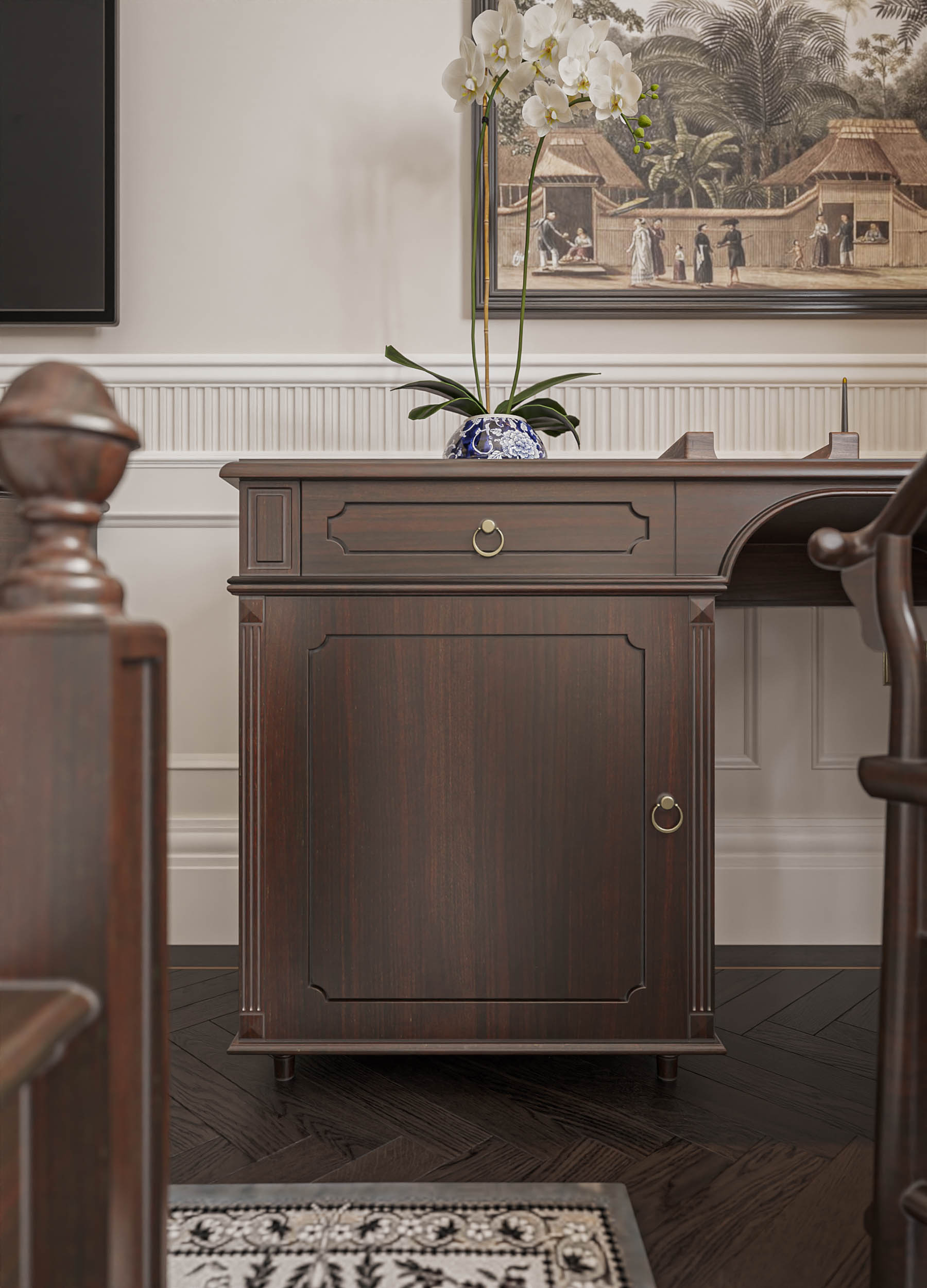 Đường nét Thẳng, vuông vắn, đề cao công năng và sự sạch sẽ.
