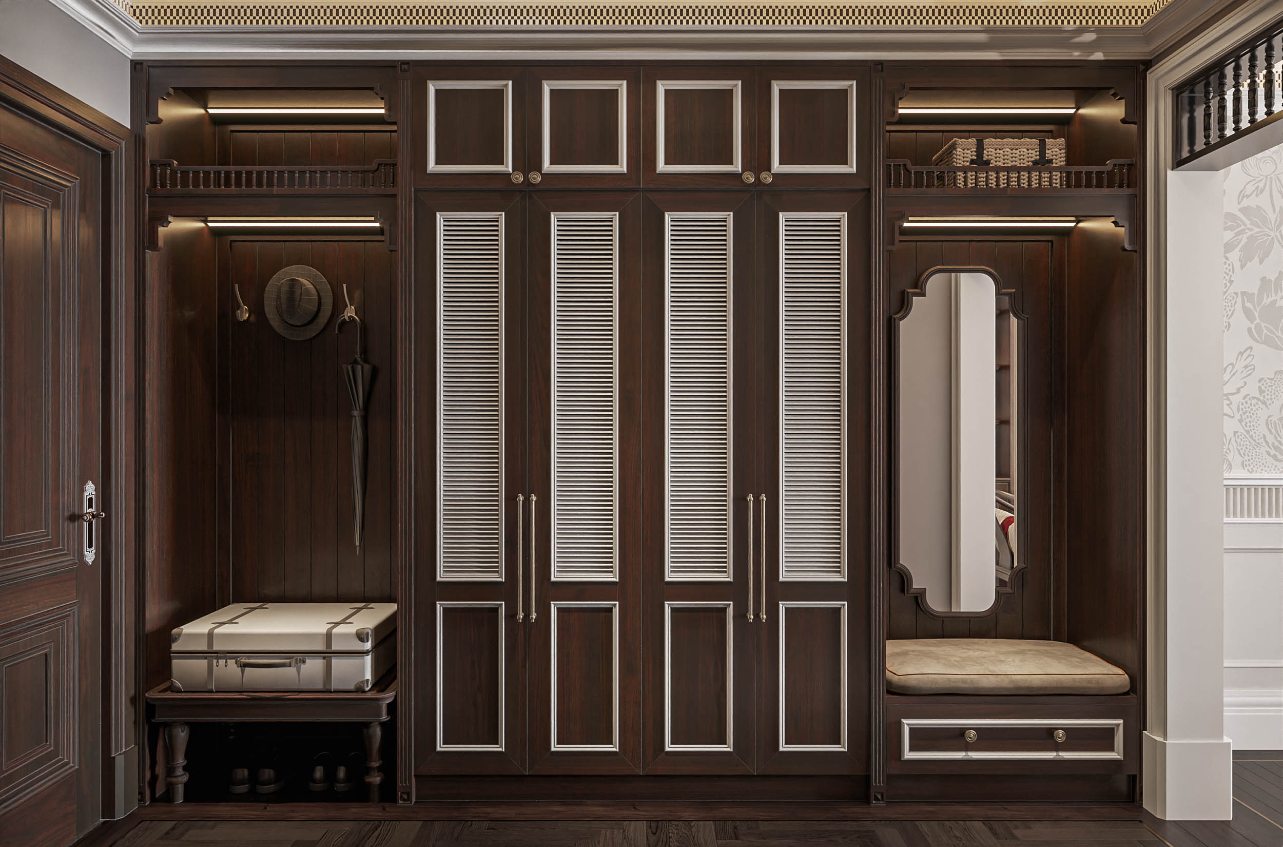 2. Bố trí không gian: Bố cục đối xứng và nội thất thủ công