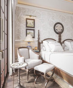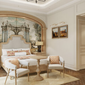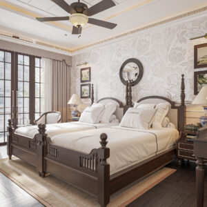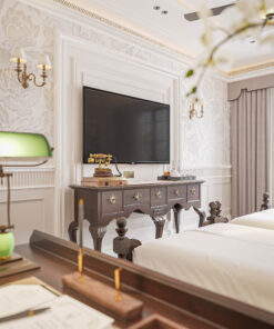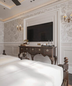 Thiết kế combo nội thất khách sạn boutique Mã Innbt14 là giải pháp nội thất Contemporary Luxury (Sang trọng Đương đại), một tổng thể giao thoa giữa sự tinh tế của vật liệu và đẳng cấp của ánh sáng. Combo này sử dụng gam màu Trắng Kem, Ghi sáng làm nền, tạo điểm nhấn xa hoa bằng các chi tiết Kim loại Vàng Đồng/Đồng Cổ và Đá Cẩm Thạch, kiến tạo nên một không gian nghỉ dưỡng thời thượng, độc đáo và cực kỳ sang trọng, nhắm đến phân khúc khách hàng thượng lưu.