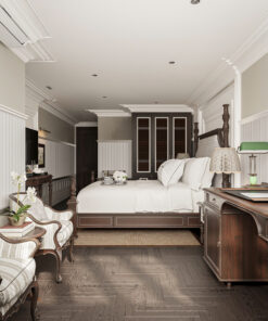 Đường nét Cổ điển, chi tiết gạch hình học, nội thất bo tròn, đậm chất resort.
