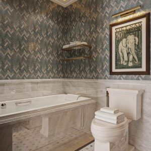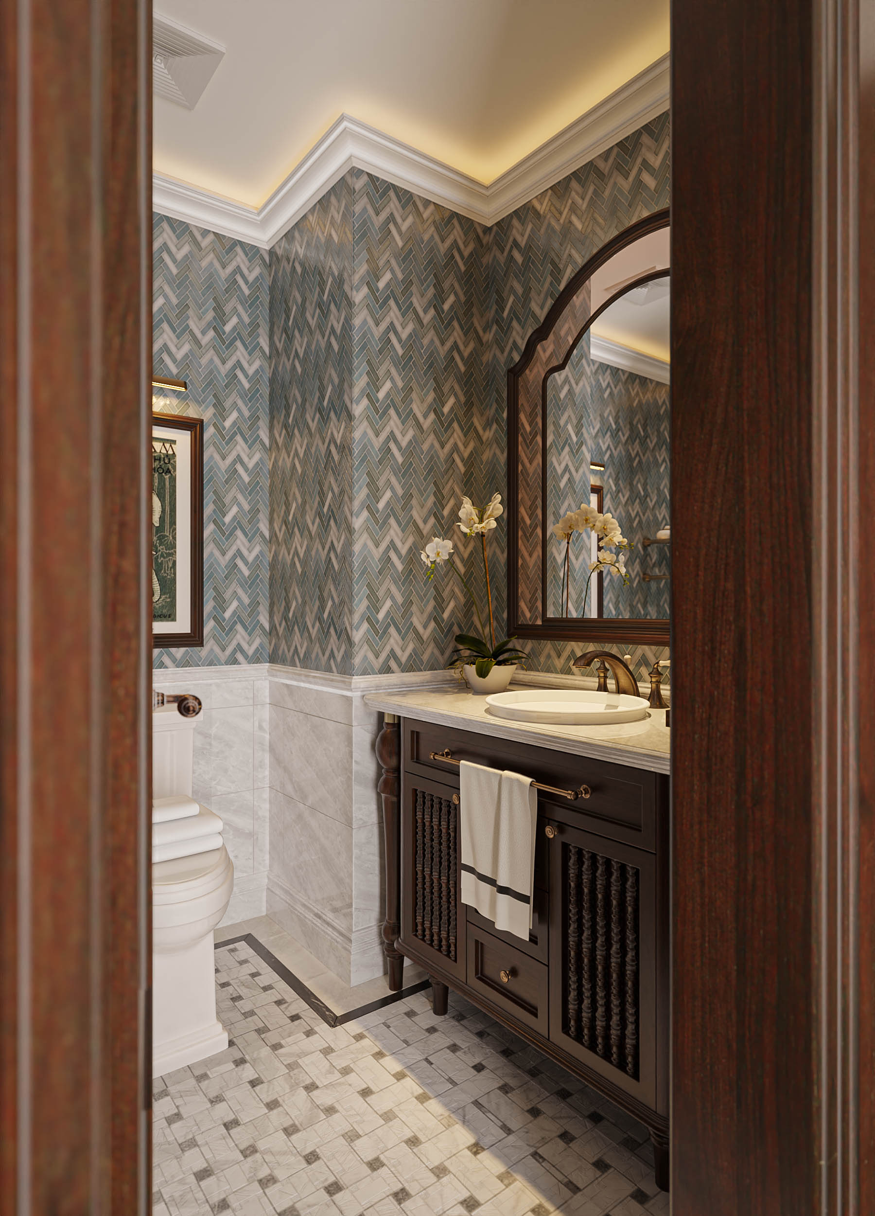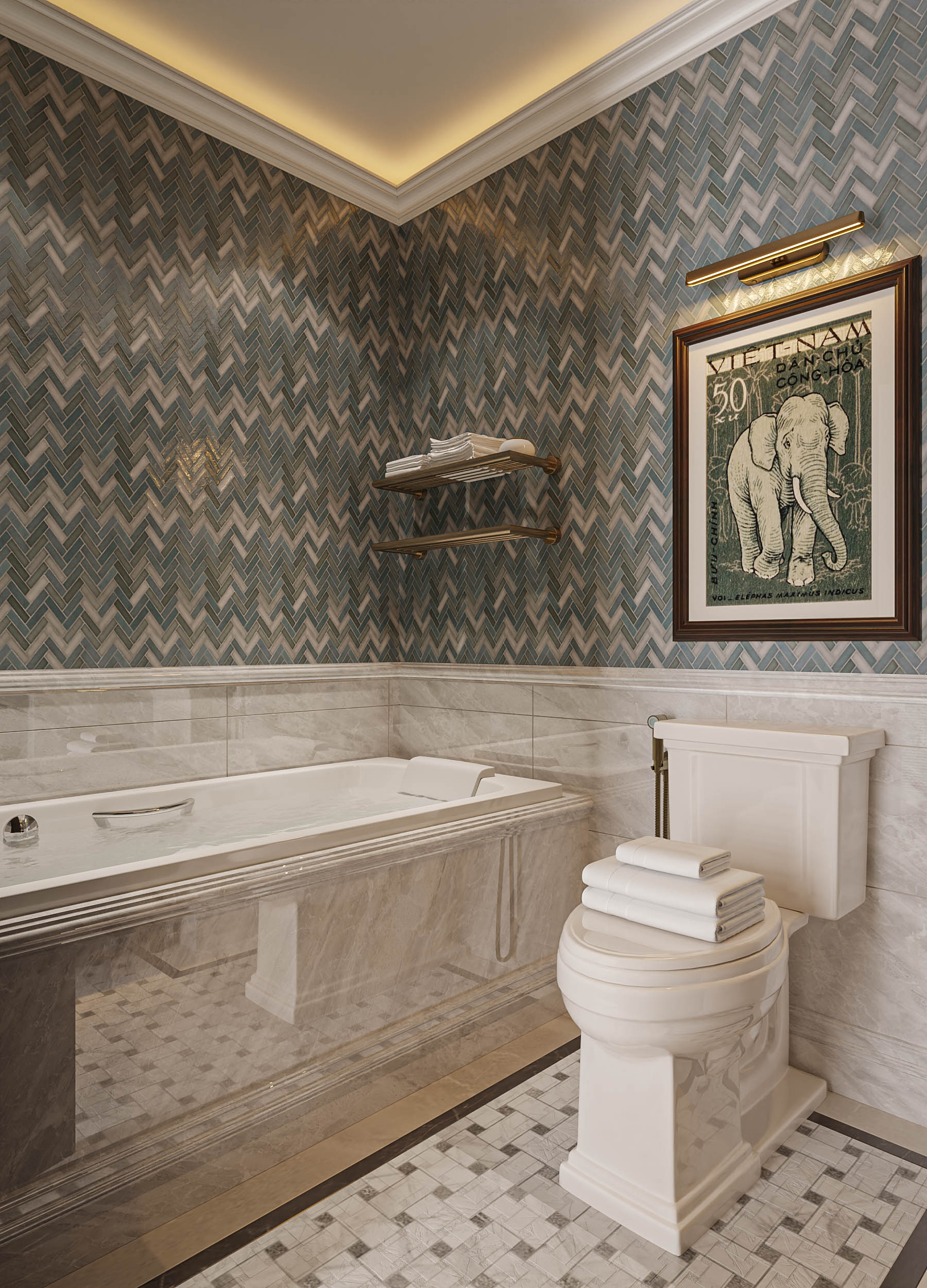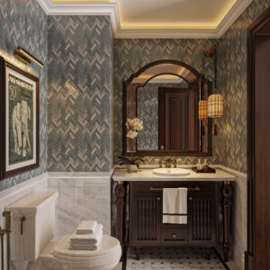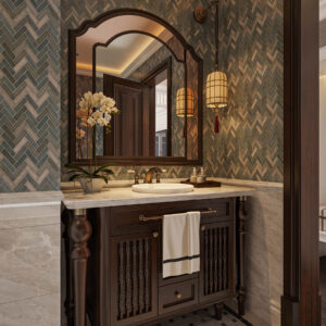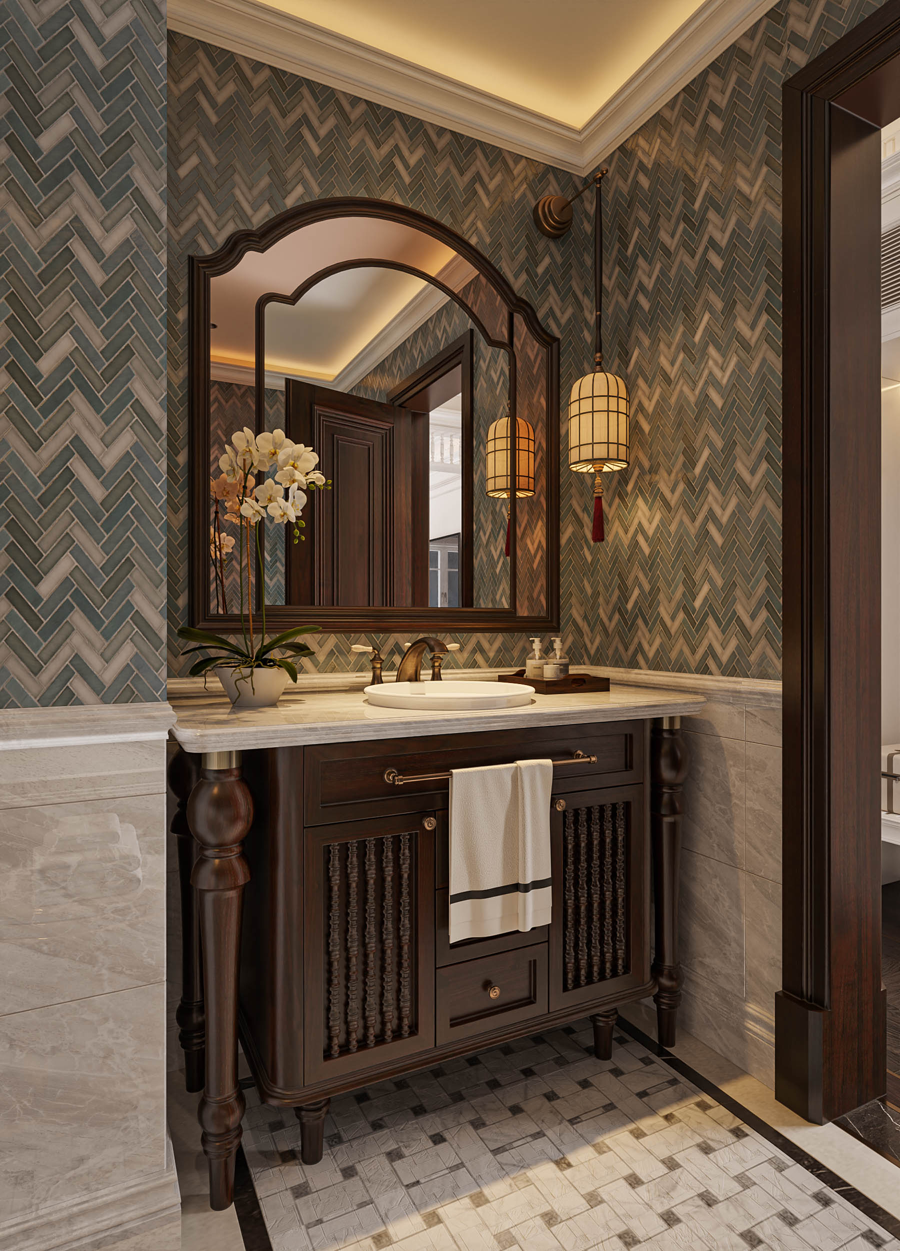 Đặc biệt, phòng tắm được đầu tư vật liệu xứng tầm: Đá Marble/Granite cho bồn rửa, gương lớn viền kim loại và thiết bị vệ sinh cao cấp. Bố cục này không chỉ đẹp mà còn tối ưu công năng trải nghiệm, đáp ứng yêu cầu nghỉ dưỡng cao nhất của khách hàng mục tiêu.