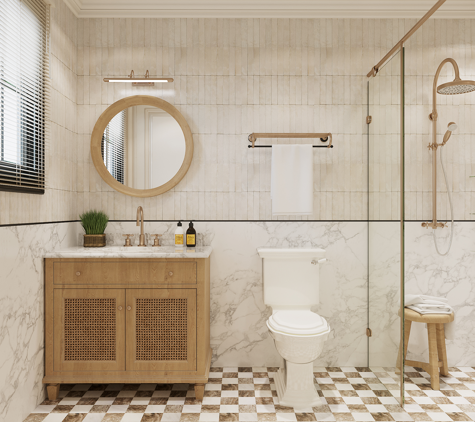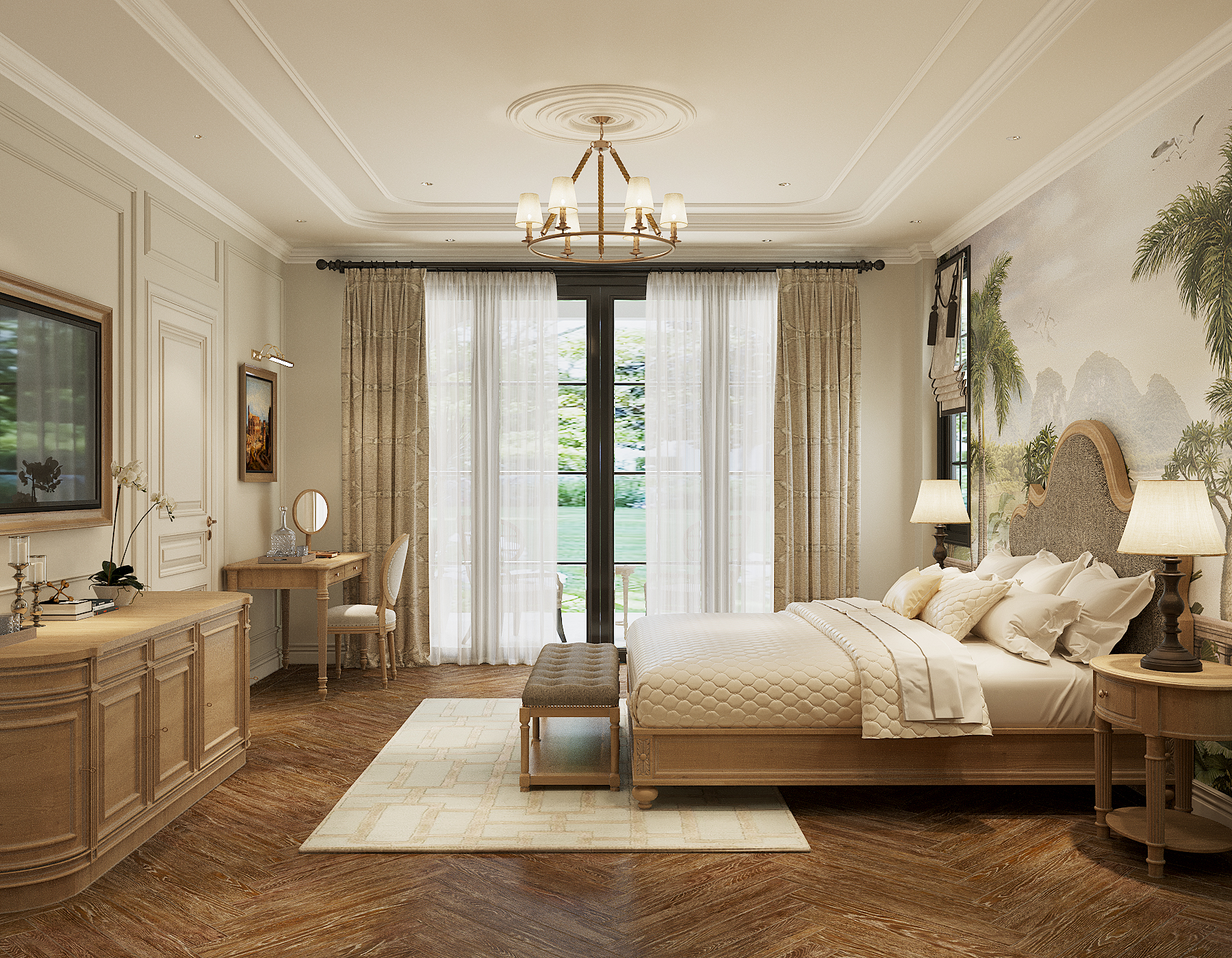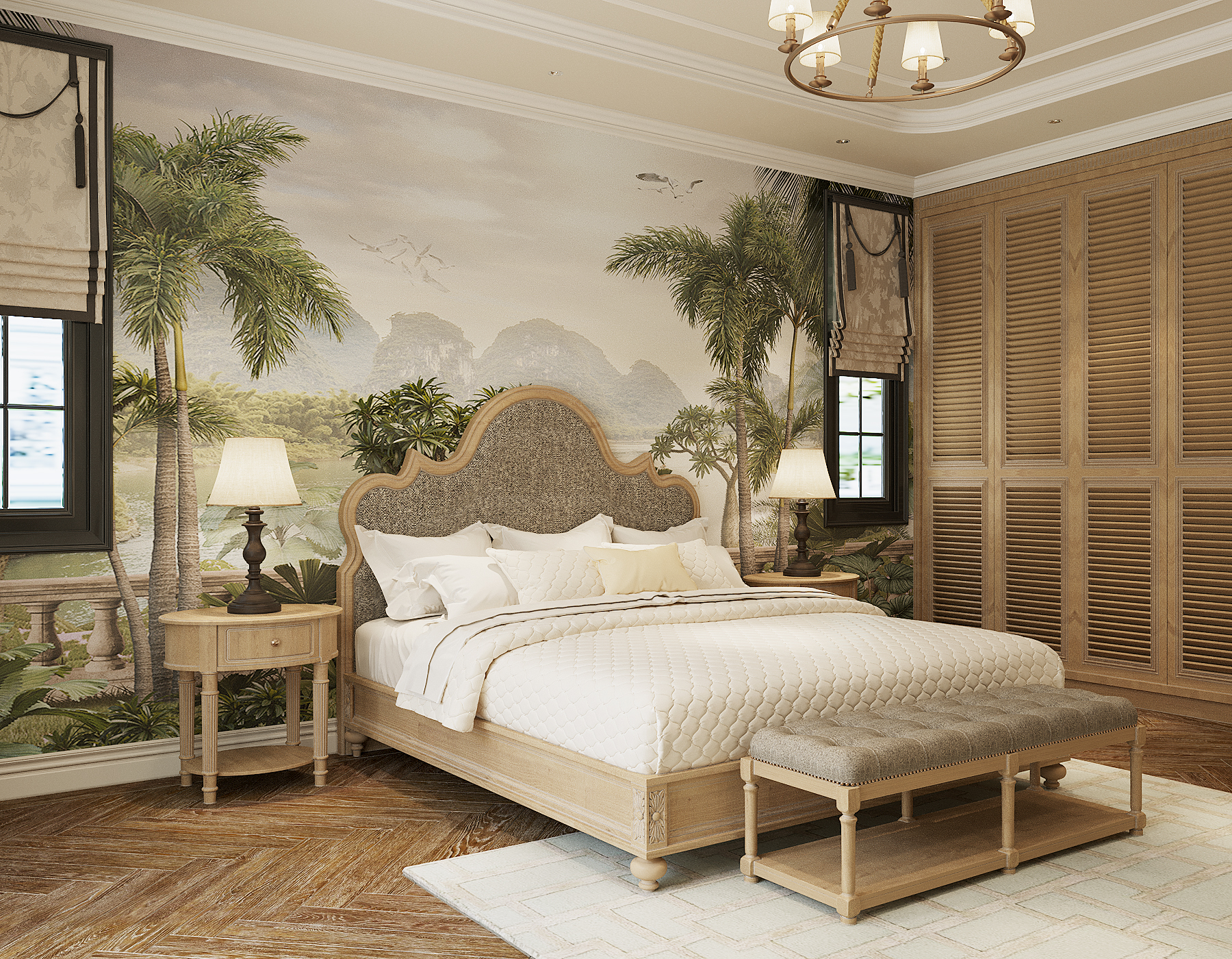 Ý tưởng chủ đạo là đưa thiên nhiên nhiệt đới vào không gian một cách tinh tế, không thô mộc. Sự pha trộn giữa vật liệu gỗ sẫm màu cao cấp, đá tự nhiên và các yếu tố trang trí từ mây, tre được cân bằng, tạo nên một cảm giác xa hoa, độc đáo mà vẫn thư thái như đang ở resort.