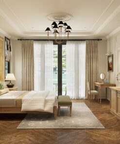 Chúng tôi ưu tiên giải pháp nội thất đa năng, như tủ quần áo âm tường, khu vực bàn làm việc tích hợp hoặc bàn trà nhỏ gọn, giúp không gian trở nên rộng rãi hơn và dễ dàng quản lý, vệ sinh. Giường ngủ được thiết kế lớn (King size), là khối phòng tạo doanh thu lớn nhất, với chất liệu vải dệt thô thân thiện môi trường.