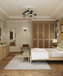 Sản xuất nội thất dựa trên dây chuyền CNC là yếu tố then chốt, giúp tất cả các chi tiết gỗ (như vách đầu giường, khung tủ, bàn ghế) có tính đồng bộ cao, đều tăm tắp như nhau. Điều này loại bỏ sai số thủ công, đảm bảo chất lượng ổn định dù là sản xuất hàng loạt cho nhiều phòng.