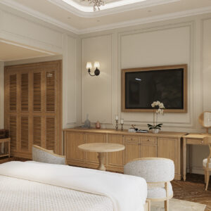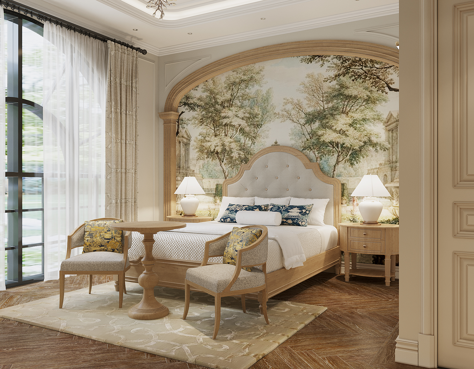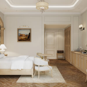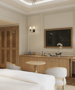 Thiết kế combo nội thất khách sạn boutique Mã Innbt26 là một tuyên ngôn về sự sang trọng hoài niệm và đẳng cấp thanh lịch (thiết kế combo nội thất khách sạn boutique). Combo này nổi bật với việc ứng dụng phong cách Tân Cổ điển tinh tế, kết hợp đường nét đối xứng hoàn hảo và vật liệu cao cấp, mang lại trải nghiệm nghỉ dưỡng xa hoa, khác biệt.