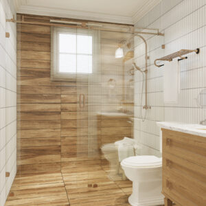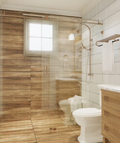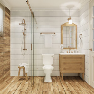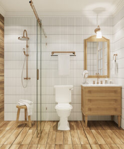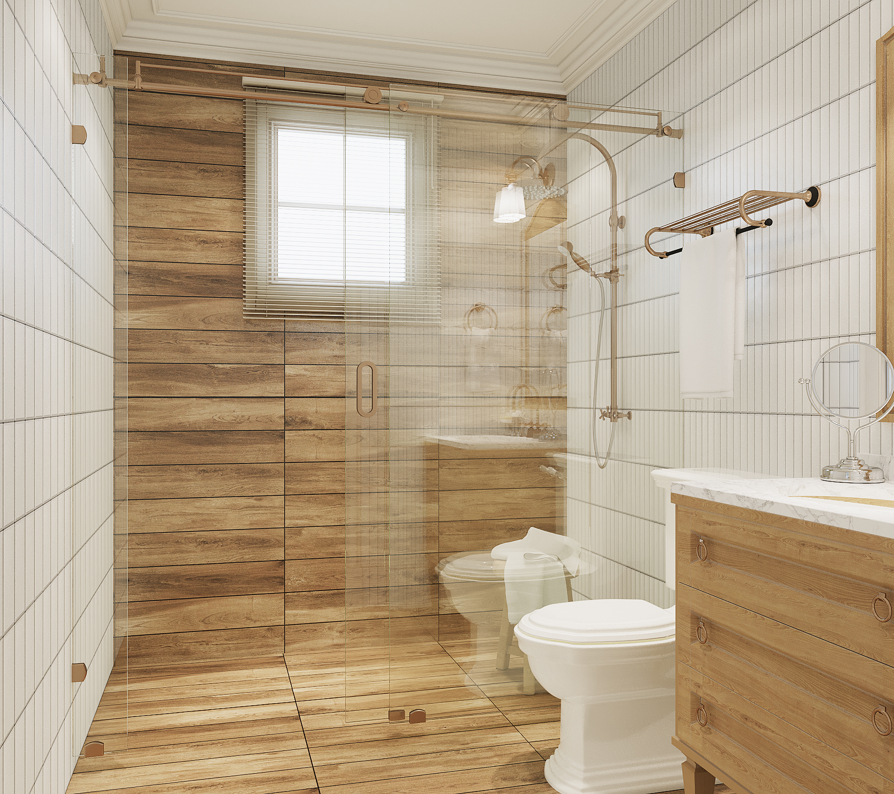 Đặc biệt, các khu vực chức năng như bàn trang điểm, tủ quần áo âm tường được tinh gọn và tích hợp khéo léo để giữ gìn sự liền mạch của không gian. Phòng tắm được thiết kế sang trọng với đá Marble/Granite nhân tạo và thiết bị vệ sinh mạ vàng đồng, mang lại trải nghiệm spa cá nhân giúp khách sạn có thêm lý do để tăng giá phòng.
